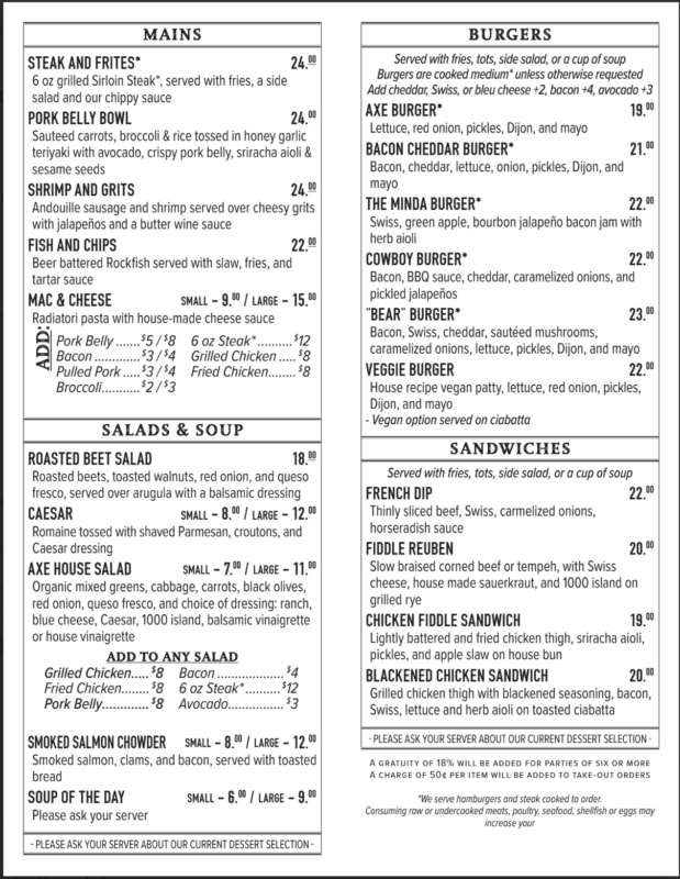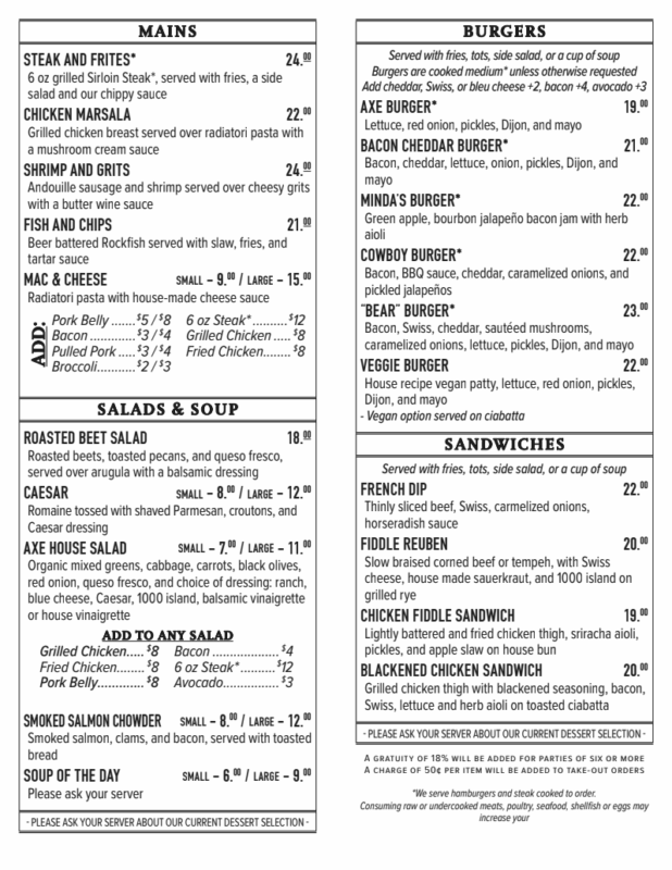 With its nostalgic intimate charm, warm ambience and friendly, welcoming staff you’ll become part of Cottage Grove’s history at one of the oldest buildings on Main Street, The Axe and Fiddle.